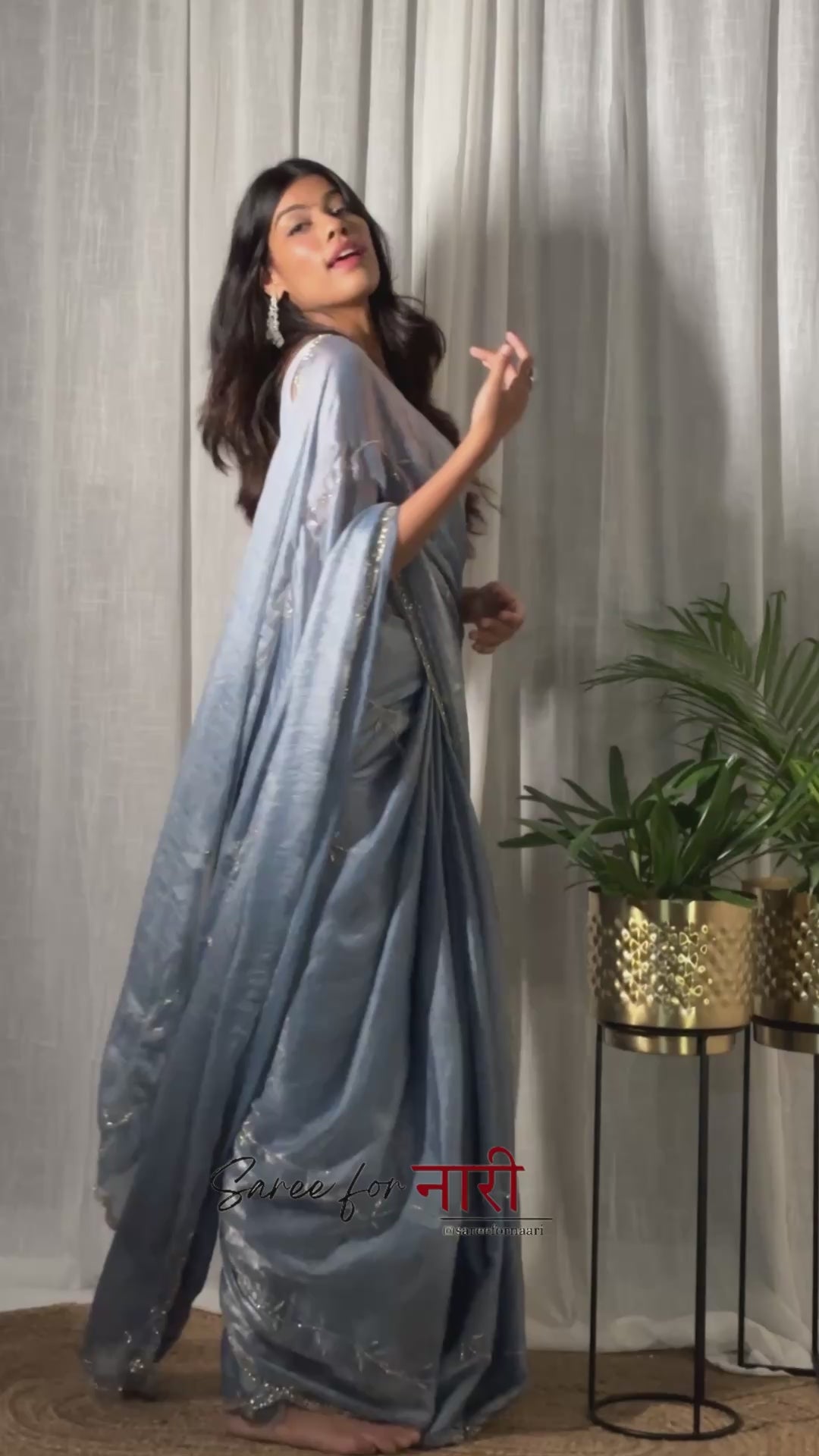 Pastel blue soft organza saree beautifully adorned with silver tubelight work all over, highlighted with a delicate rose patch on the pallu, paired with a fully heavy blouse.